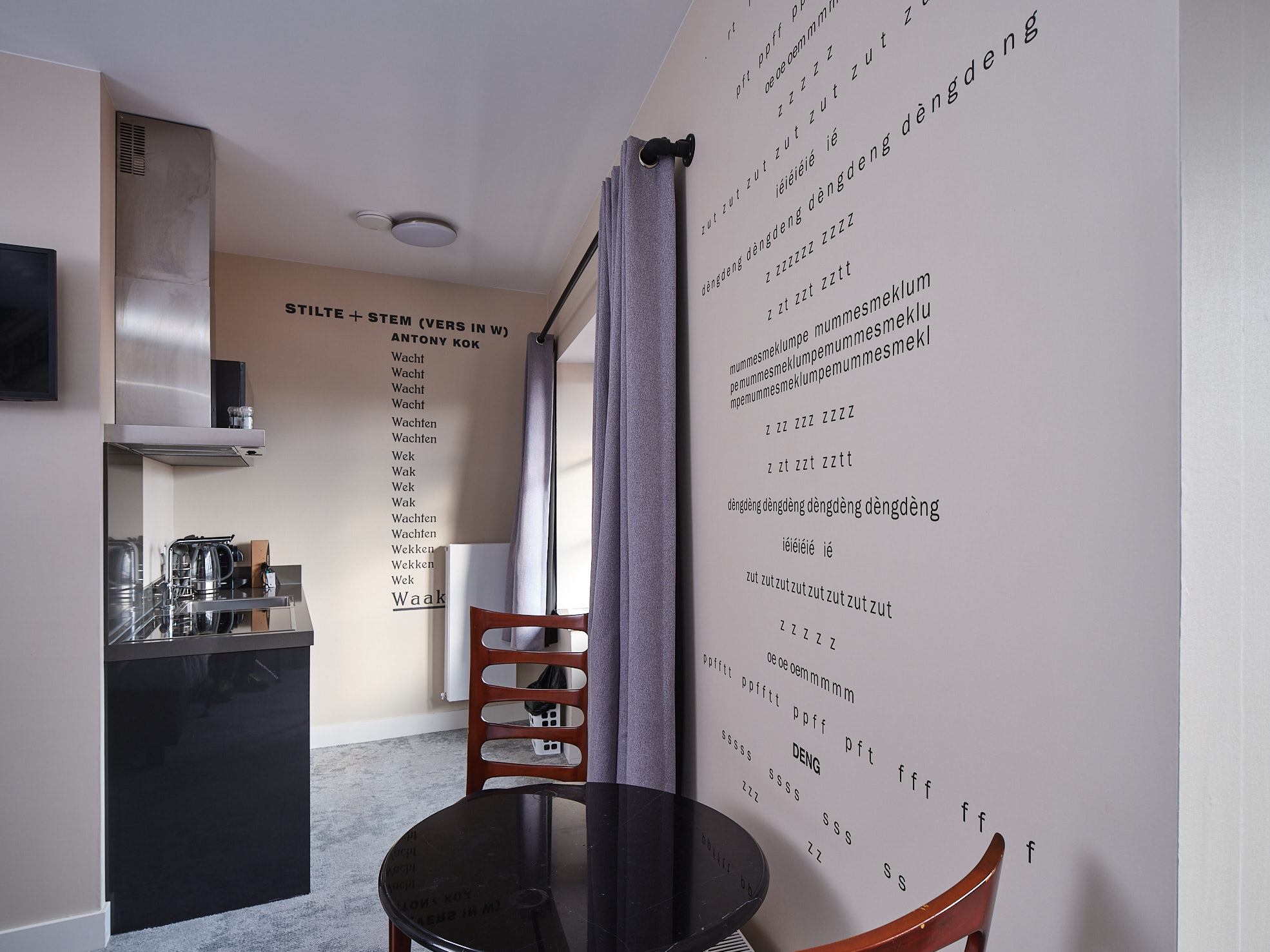 De in Tilburg woonachtige spoorwegbeambte Antony Kok (Rotterdam, 1882 – Haarlem, 1969) was naast boezemvriend van Theo van Doesburg, mecenas, getalenteerd pianist en schrijver. Theo van Doesburg die tijdens W.O. I een tijdlang in Tilburg was gelegerd en Antony Kok voerden intense gesprekken. Tijdens die ontmoetingen ontstonden de eerste noties van een nieuwe kunstbeweging die in 1917 in Leiden door Van Doesburg zijn beslag zou krijgen met de oprichting van kunstbeweging De Stijl. Van Doesburg en Kok en hun artistieke vrienden kwamen bij elkaar in Hotel-Café-Restaurant Albert Janssen dat tot 1930 op de huidige locatie van Hotel Central aan de Spoorlaan was gevestigd. De conceptuele ideeën voor wat vanaf 1917 de nieuwe internationale kunstbeweging De Stijl zouden gaan inkleuren werden hier in potlood geschetst. In de naar Kok vernoemde kamer zijn naast het gedicht Stilte + Stem (vers in W) ook het klankgedicht TREIN en het gedicht Nachtkroeg te lezen. Langs het plafond memoreert een fries met pianotoetsen de muzikale identiteit van Kok. Zijn werk als spoorwegbeambte krijgt vorm in de achter het bed aangebrachte fotografie van een hangende locomotief in de hoofdwerkplaats van de Spoorwegen schuin tegenover Hotel Central waar Antony Kok als klerk werkzaam was. Als een permanente waardering verscheen op 18 april 2022 de 140e verjaardag van Antony Kok op loopafstand van Hotel Central één van zijn aforismen als lichtkunstwerk op de luifel van Gebouw 79 in de Tilburgse Spoorzone: ‘De wereld van heden raast door in Dada’s voetspoor.’